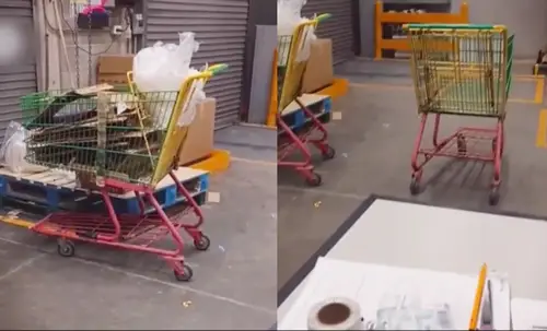 Guardia rompe en llanto al ver carritos moverse solos en supermercado