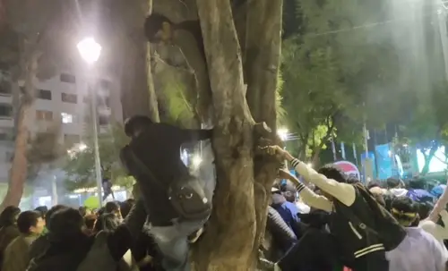 Hinchas se trepan a árboles y bancos para ver a La Verde en Cochabamba
