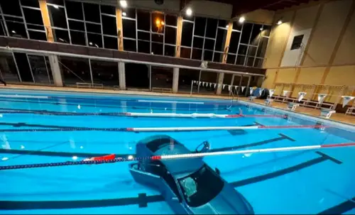 ¡Confundió el freno con el acelerador! Vehículo cae a una piscina