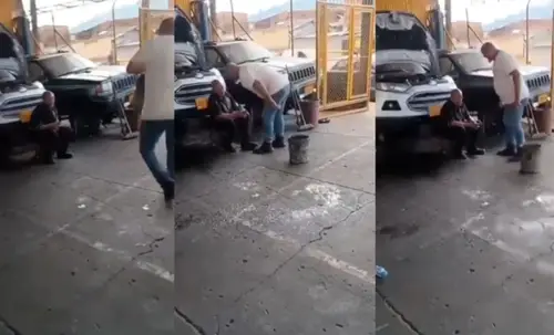 ¡Cruel! Empleador lanzó un balde de agua a un adulto mayor (Video)