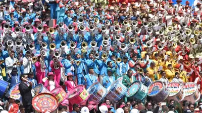 Este festival, que ha sido declarado como Obra Maestra del Patrimonio Oral por la Unesco, reune a 6 mil músicos pertenecientes a 75 bandas, quienes están haciendo retumbar la ciudad con el imponente sonido de bombos, trombones, trompetas, platillos y otros instrumentos.