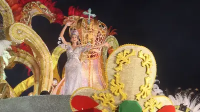 El reloj marcaba poco después de la medianoche cuando el Cambódromo se detuvo para presenciar el momento más esperado: el paso de Camila I por el palco oficial y la tarima de Red Uno. El público, que se mantuvo firme en sus lugares durante toda la jornada, recibió a la soberana entre vítores, fuegos artificiales, flashes y una ovación ensordecedora.
