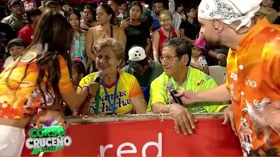 "Ya son tantos años que estamos acá viendo este Corso que es el alma del cruceño. ¡Viva el carnaval!", exclamó el esposo, quien no perdió la oportunidad de añadir con un guiño que, para él, lo más hermoso de la noche era su compañera de vida.