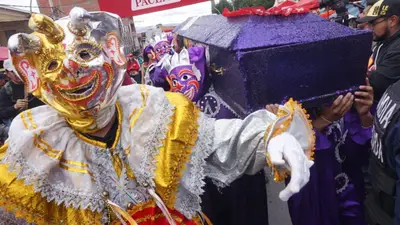 Comparsas, personajes típicos y autoridades municipales encabezaron el cortejo fúnebre simbólico rumbo al Cementerio General de La Paz. En primera fila, una fotografía del actor acompañó el féretro del Pepino, personaje central de las carnestolendas que Santalla interpretó en innumerables ocasiones, convirtiéndolo en símbolo de identidad cultural.