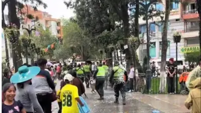 En medio de la alegría y el desenfreno característico del Carnaval, un grupo de efectivos policiales terminó completamente empapado tras ser sorprendido con una lluvia de globos de agua en la plaza principal de Quillacollo, en Cochabamba.