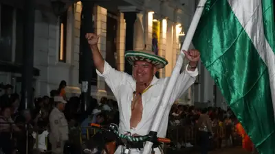 El protagonista destacó por su indumentaria, que incluía un sombrero de saó pintado con la tricolor verde, blanco y verde, además de una honda y un tari en la cadera. La imagen del ciclista cruzando el centro histórico reafirma que, más allá de la música, el alma de Santa Cruz reside en sus costumbres más profundas.