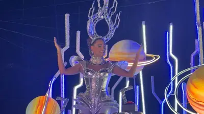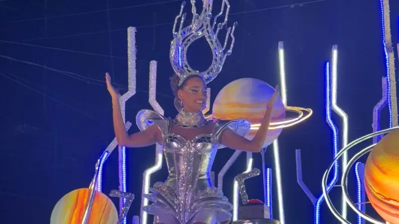 La soberana desfiló en un imponente carro alegórico que transportó a los asistentes a una nueva era.
