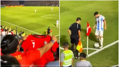 Durante el partido entre Paraguay y Argentina por la undécima fecha de las eliminatorias rumbo al Mundial 2026, un hincha paraguayo protagonizó un acto que capturó la atención de todos. Desde la tribuna, mientras Lionel Messi se preparaba para ejecutar un tiro de esquina, el aficionado mostró una camiseta de Portugal con el dorsal 7 de Cristiano Ronaldo y lanzó frases provocadoras como "acá tenés a tu padre".