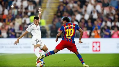 La final se acercaba a su final cuando un bonito duelo entre dos de los mejores jugadores del mundo, una carrera de Lamine Yamal encimado por Kylian Mbappé, más fresco tras salir para jugar los últimos minutos, acababa en robo de balón del madridista y una dura entrada que dejaba con diez al Barcelona. De Jong frenaba la carrera de Kylian con la bota izquierda mostrando los tacos e impactando cerca de la rodilla dañada que impidió ser titular al máximo referente madridista.