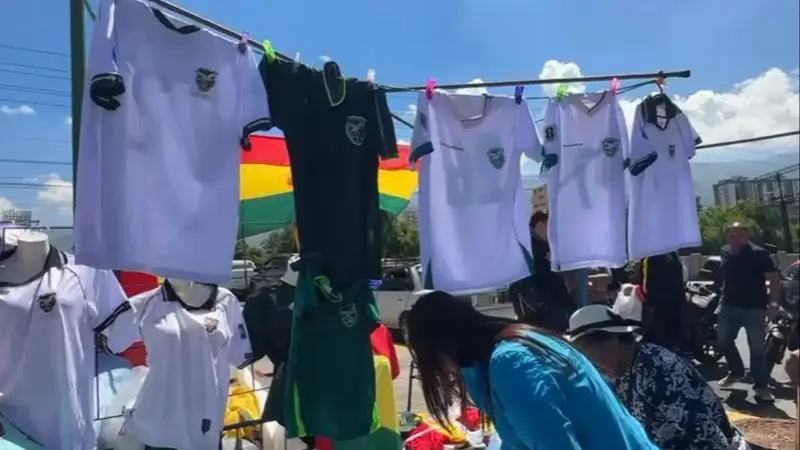 En Cochabamba, en inmediaciones de la plaza de Las Banderas, se instaló un punto de venta de camisetas donde se registró alta afluencia de personas, especialmente en busca de la indumentaria blanca que la selección prevé utilizar esta noche.