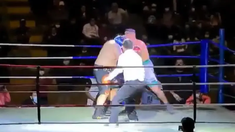 Por no saber controlarse, un boxeador pandino, luego de agarrar a patadas a su rival pierde la pelea que hasta el momento venía controlando.