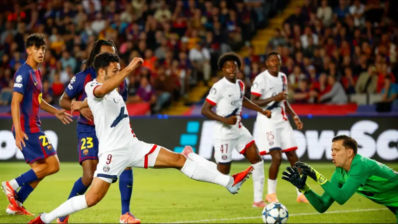Un gol del delantero Gonçalo Ramos en el minuto 90 dio la victoria al París Saint-Germain ante el Barcelona (1-2) en el partido de la segunda jornada de la fase liga de la Liga de Campeones disputado en el Estadio Olímpico Lluís Companys.