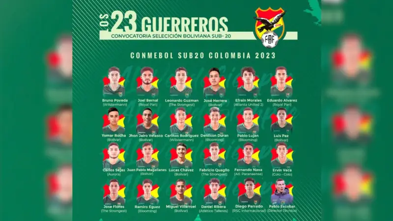 Pero conozcamos en realidad a cada uno de los jugadores que vestirán la casaca verde de nuestra selección: En el arco tenemos al guardameta que ha partido como titular al mando de Pablo Escobar, Bruno Poveda, que con sus 1,83 metros de estatura es clave para ir por arriba, viene de los registro de Wilstermann y ya ha tenido partidos en la élite del fútbol en nuestro país.