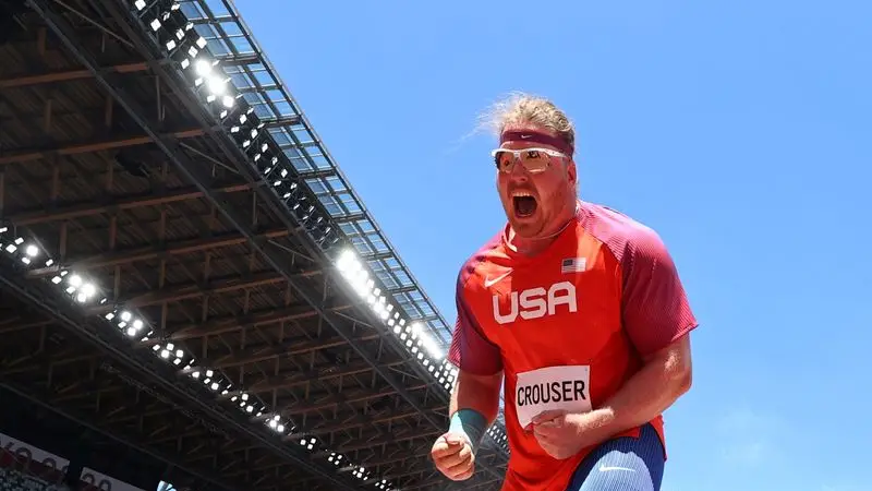 Con gafas de sol y un gorro con la bandera de Estados Unidos, Crouser, que batió el récord mundial en junio con una marca de 23,37, comenzó la final de forma fulgurante, batiendo su récord olímpico en su primer intento y mejorándolo en el segundo.