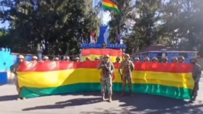Conscriptos del Batallón de Ingeniería “Cnl. Méndez” en Tarija entonaron canciones patrióticas y expresaron su respaldo a la selección boliviana.