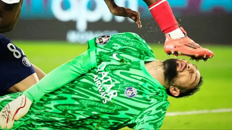 El incidente ocurrió a los 16 minutos del primer tiempo, cuando Singo intentó anotar el primer gol del encuentro y terminó impactando accidentalmente con los tacos metálicos de sus botines en la cara del portero italiano. Donnarumma quedó tendido en el césped, visiblemente afectado por el golpe, lo que provocó la inmediata atención del cuerpo médico del PSG.