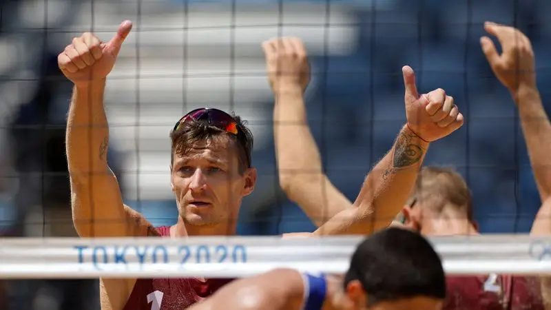 El dúo letón se impuso a los brasileños por 21-16 y 21-19 en 43 minutos de partido, gracias a los agresivos remates y ataques de Plavins, de 36 años, y a los bloqueos y la defensa de Tocs, de 32.