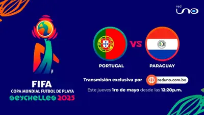 Este jueves 1 de mayo, la Red Uno de Bolivia llevará a cabo la transmisión del partido entre las selecciones de Portugal y Paraguay por el Mundial de Fútbol Playa 2025, a través de su sitio web oficial reduno.com.bo. El encuentro arrancará a las 12:30 (hora boliviana), ofreciendo una alternativa diferente para disfrutar el feriado.