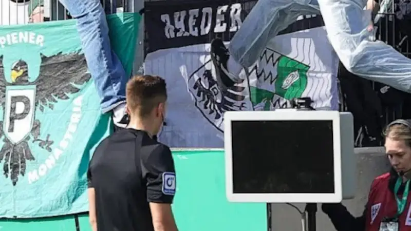Poco después del incidente, desde la tribuna del Münster apareció una pancarta con el mensaje “Desconecten el VAR”, lo que generó sospechas de que el hecho había sido planificado.
