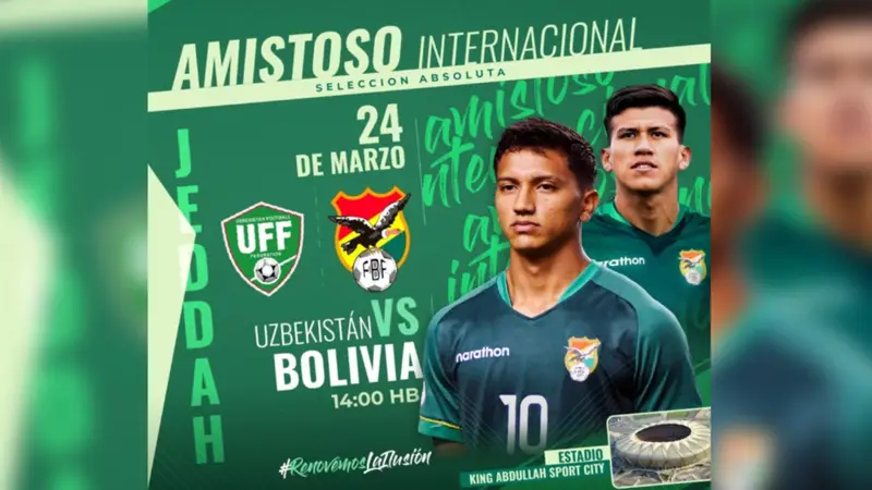 La Federación Boliviana de Fútbol reprogramó el partido amistoso con Guatemala y solo se confirman 2 cotejos amistosos en Arabia Saudita, contra Uzbekistán y la selección local el 24 y 28 de marzo.