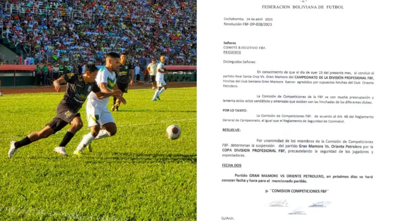 Debido a la agresión que sufrieron los hinchas de Libertad Gran Mamoré en la reciente fecha del fútbol boliviano, después del partido contra Real Santa Cruz, la Federación Boliviana de Fútbol a través del Comité de Competiciones decidió suspender el duelo que iban a sostener los representativos de Libertad Gran Mamoré frente a Oriente Petrolero en el departamento de Beni, esto para precautelar la seguridad de jugadores y espectadores.