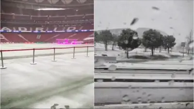 Una intensa nevada cae en Madrid antes del partido entre Atlético de Madrid y Bodø/Glimt, correspondiente a la última jornada de la fase de liga de la Champions League, según muestran videos grabados por hinchas y compartidos en redes sociales.