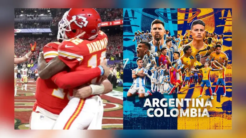 Jugadores del un duelo de fútbol americano (izquierda), jugadores de Argentina y Colombia. Foto: Internet.