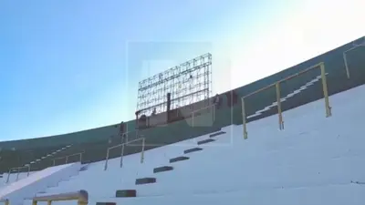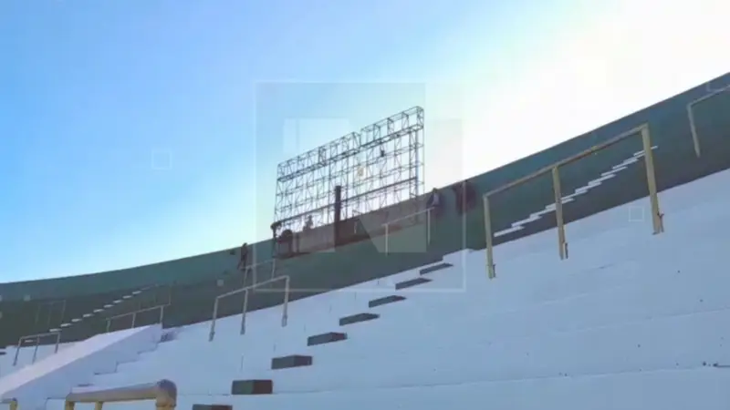 La pantalla de marcador de un partido de fútbol fue colocada este miércoles en el estadio Tahuichi, luego de mucho tiempo, como parte de los últimos detalles de cara al partido amistoso ante la selección de México, anfitriona del Mundial, que se disputará este domingo.
