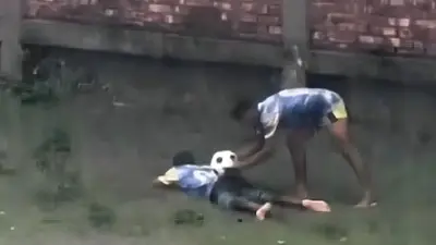 En un video que circula en redes, se observa cómo el jugador hace que su compañero se acueste boca abajo sobre el banderín del corner y coloca el balón sobre sus glúteos. En sus primeros intentos no logra éxito.