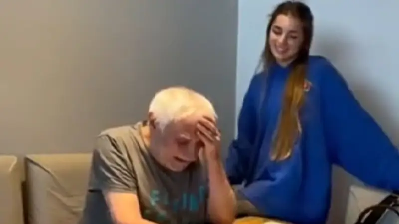 Una de las nietas del anciano hincha de la tercera edad de Boca Juniors le hace conocer que podrá asistir al cotejo que se jugará hoy desde las 16:00, contra Fluminense, la emoción de este seguidor se hizo viral. Llora y se toma de la frente, un acto poco visto en la vida cotidiana pero sí real en la pasión del fútbol.