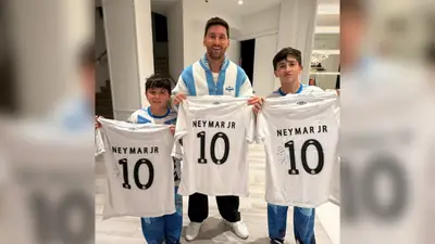 Neymar envió las camisetas del Santos, exhibidas por el capitán de la selección argentina y sus hijos Thiago y Mateo, y que contienen una dedicatoria del brasileño a su amigo y antiguo compañero en el FC Barcelona y el París Saint-Germain (PSG).