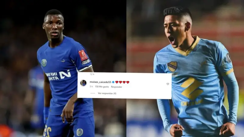 En un video publicado por Ramiro Vaca en su cuenta de Instagram, Caicedo, estrella del Chelsea y campeón del Mundial de Clubes con el equipo inglés, reaccionó con corazoncitos como muestra de apoyo y empatía por el duro momento que vivió el mediocampista nacional tras la sanción.