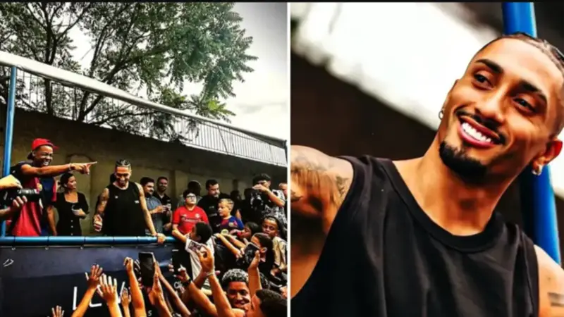 El jugador del Barcelona regresó a su barrio en Porto Alegre y repartió regalos, comida y momentos de diversión.