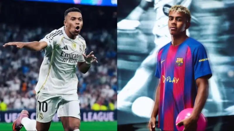 Kylian Mbappé del Real Madrid y Lamine Yamal del Barcelona. Foto: Redes sociales.