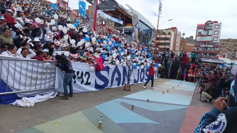 Este sábado, el Gran Festival de Bandas en Oruro, uno de los eventos más representativos del folklore boliviano que da inicio al carnaval de orureño, fue el escenario de una emotiva y vibrante demostración de pasión por parte de la hinchada del Club San José.