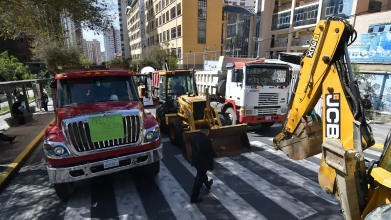 Motivo por el cual este lunes el sector decidió bloquear las avenidas principales del centro de la ciudad de La Paz con sus vehículos de alto tonelaje como medida de presión.