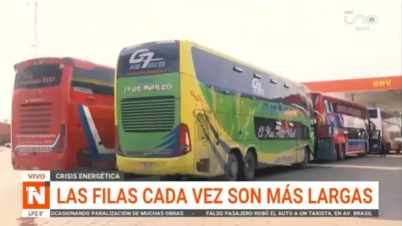 La escasez de diésel sigue generando preocupación en Santa Cruz. Desde la Terminal Bimodal, el transporte interdepartamental e interprovincial reporta salidas irregulares, ya que la mayoría de los buses deben hacer filas durante días para cargar combustible.