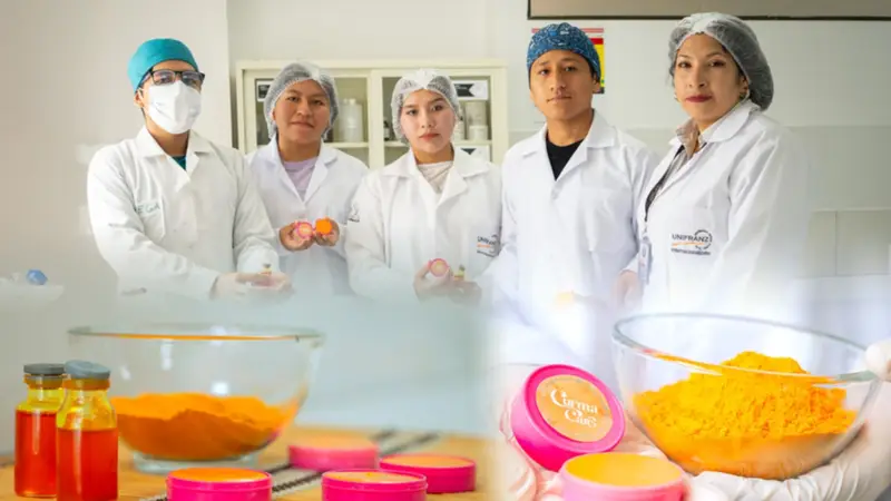 Los estudiantes desarrollaron un bálsamo artesanal llamado “Curma Care”, que consiste en la elaboración de un bálsamo a base de cúrcuma (Curcuma longa) para el alivio de los síntomas del resfriado común”. El grupo de jóvenes desarrolladores fue liderado por Adriana Luna Hilarion, y conformado por: Abraham Antony Miranda Cuentas, Oriana Andrea Tito Bautista y Brandon Andrés Vega Cárdenas. Todos estudiantes de la carrera de Bioquímica y Farmacia en Unifranz.