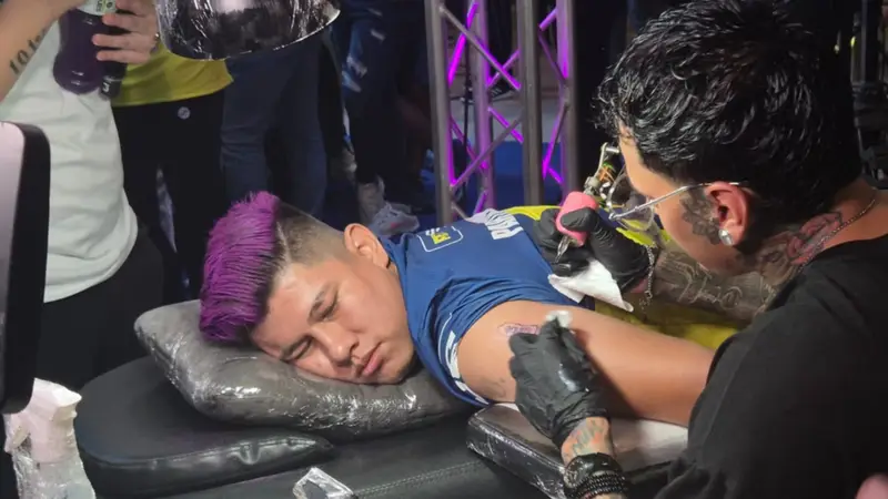 El primero en pasar por la aguja fue el participante número 16. No solo obtuvo el tatuaje, sino que también disfrutó de un merecido descanso mientras se realizaba el diseño y mientras tatuaban al resto de los valientes.