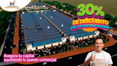 Además del descuento al contado, Monumental ofrece planes de pago a plazos de hasta 5 años, facilitando el acceso para comerciantes emergentes. Actualmente también cuenta con una promoción especial: si el cliente paga su cuota inicial, Monumental la duplica (2x1 en la inicial), lo que aumenta significativamente la inversión inicial necesaria para asegurar un puesto propio.
