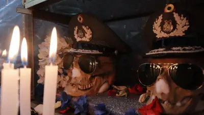 Devotos de todas partes del país llegan con sus cráneos humanos —las llamadas 'ñatitas'— cuidadosamente adornados con gorros, gafas y coronas florales, para agradecer los favores recibidos y pedir protección para el nuevo año.