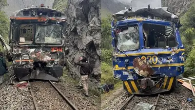 Videos enviados por pasajeros a la emisora RPP mostraron a turistas postrados a un lado de la vía y a las locomotoras dañadas por el impacto.