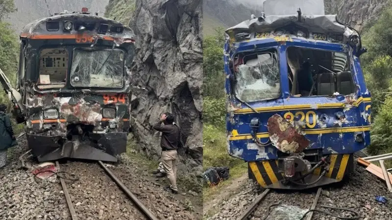 El accidente ocurrió hacia las 13H20 locales (18H20 GMT) en la ruta ferroviaria de una sola vía que conecta a la localidad de Ollantaytambo con Machu Picchu, en la región andina de Cusco.