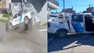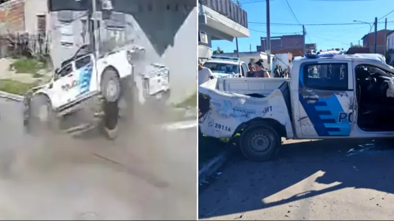 Dos vehículos de la policía colisionaron brutalmente a alta velocidad en González Catán, provincia de Buenos Aires, mientras perseguían a una motocicleta. Cuatro agentes resultaron heridos.