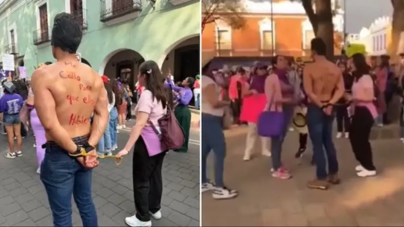 Un momento inesperado se volvió viral durante una marcha por el Día Internacional de la Mujer en Tlaxcala, México, luego de que un hombre que participaba junto a su pareja fuera expulsado del grupo de manifestantes.