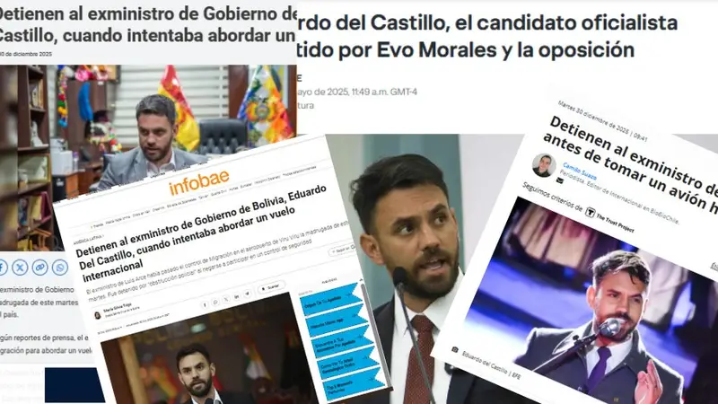 La aprehensión del exministro de Gobierno de Bolivia, Eduardo Del Castillo, ocurrida en la madrugada de este martes, captó la atención de las principales agencias de noticias y medios internacionales. La noticia, que se difundió tras su detención en el aeropuerto internacional de Viru Viru, fue reflejada por la prensa extranjera como una aprehensión a una de las figuras más influyentes del gabinete de Luis Arce.