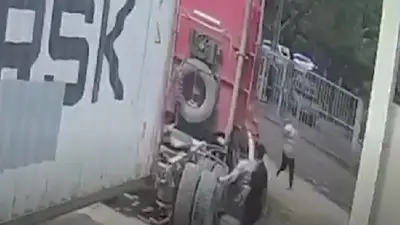 [Video] Las cámaras de seguridad captaron el momento en que un adulto mayor fue embestido por una tractomula que daba reversa mientras él caminaba distraído con su celular.