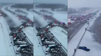 El percance ocurrió la tarde del sábado, cuando el asfalto, cubierto de hielo y nieve por el temporal, se volvió "extremadamente resbaladizo", según informaron las autoridades. Esta condición, sumada a la drástica reducción de la visibilidad, provocó que decenas de conductores perdieran el control de sus unidades, desencadenando un choque en cadena de gran magnitud.