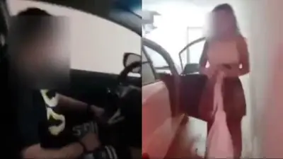 La mujer descendió del automóvil y quedó visiblemente sorprendida, mientras su pareja la increpaba. En las imágenes se escucha cómo el hombre confronta también al acompañante y cuestiona la situación.
