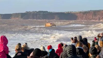 Los servicios de emergencia acudieron ayer por la mañana a una playa de la localidad de Budleigh Salterton, en Devon, cuando recibieron una alerta sobre la presencia de personas en dificultades en el agua, en una jornada fría y con fuertes vientos en la zona.